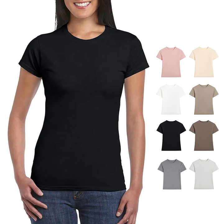 Black Elastic Plain Round O Neck Slim Fit Custom Graphic Printing Women'S Cotton T Shirt For Women Ladies T-shirt for men