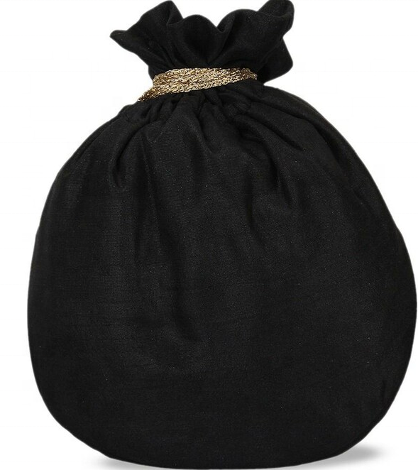 Black Embellished Potli Clutch Designer Handbag Drawstring Bag Pouch Bridal Bags Indian Handbag Wedding