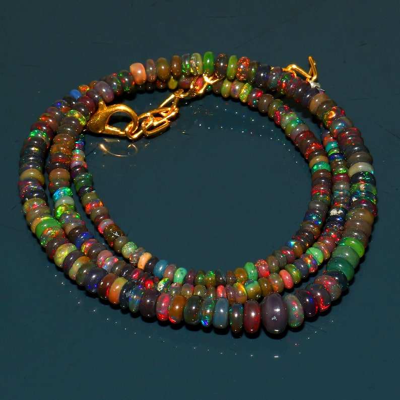 Product Name:Black Ethiopian Fire Opal Beaded Pendant Necklace