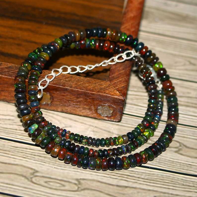 Black Ethiopian Opal Beaded Necklace 3 To 5MM Welo Fire Opal Smooth Rondelle 16 Inch Gemstone Jewelry Necklace