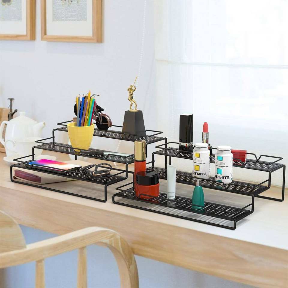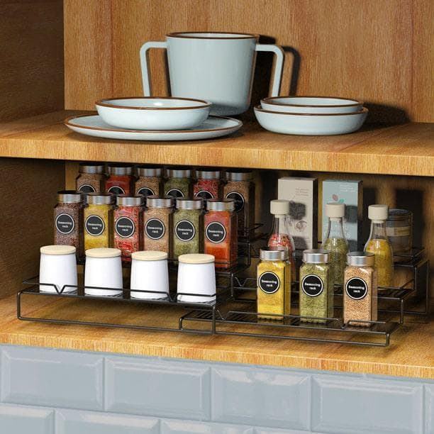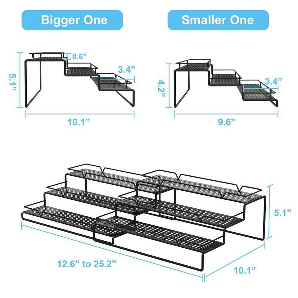 Black Expandable Metal Cabinet Spice Rack Storage Holders Kitchenware Item for Multipurpose Use Black Coated 3 Tier Large Size