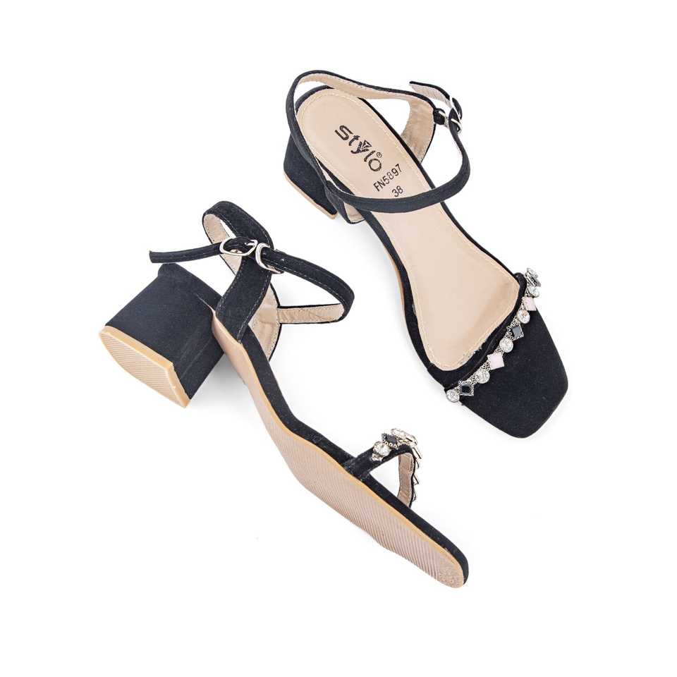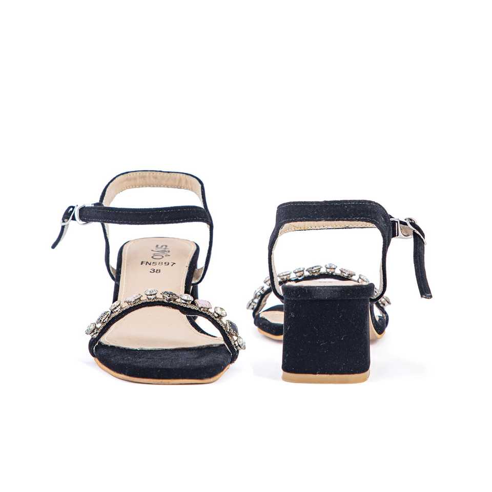 Black FN5897 Fancy Heel Sandal with Open Toe and Genuine Leather Insole High Top Breathable Printed Design for Spring Summer