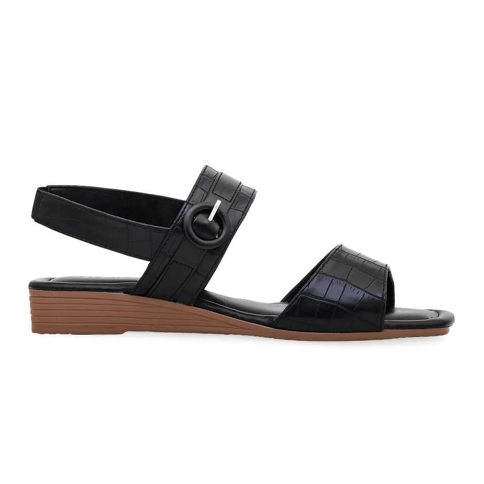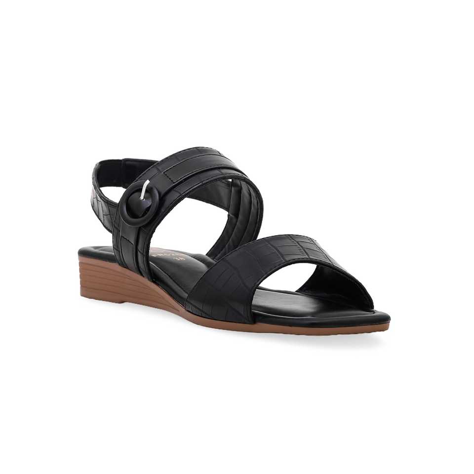 Black FR5286 Formal Heel Sandal with Open Toe Ankle Strap and Platform Genuine Leather PVC Insole Fashionable Summer Style