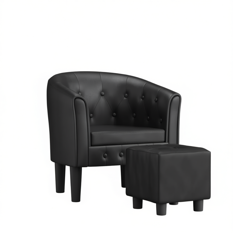 Black Faux Leather Tub Chair With Tufted Back And Ottoman Contemporary Living Room Furniture