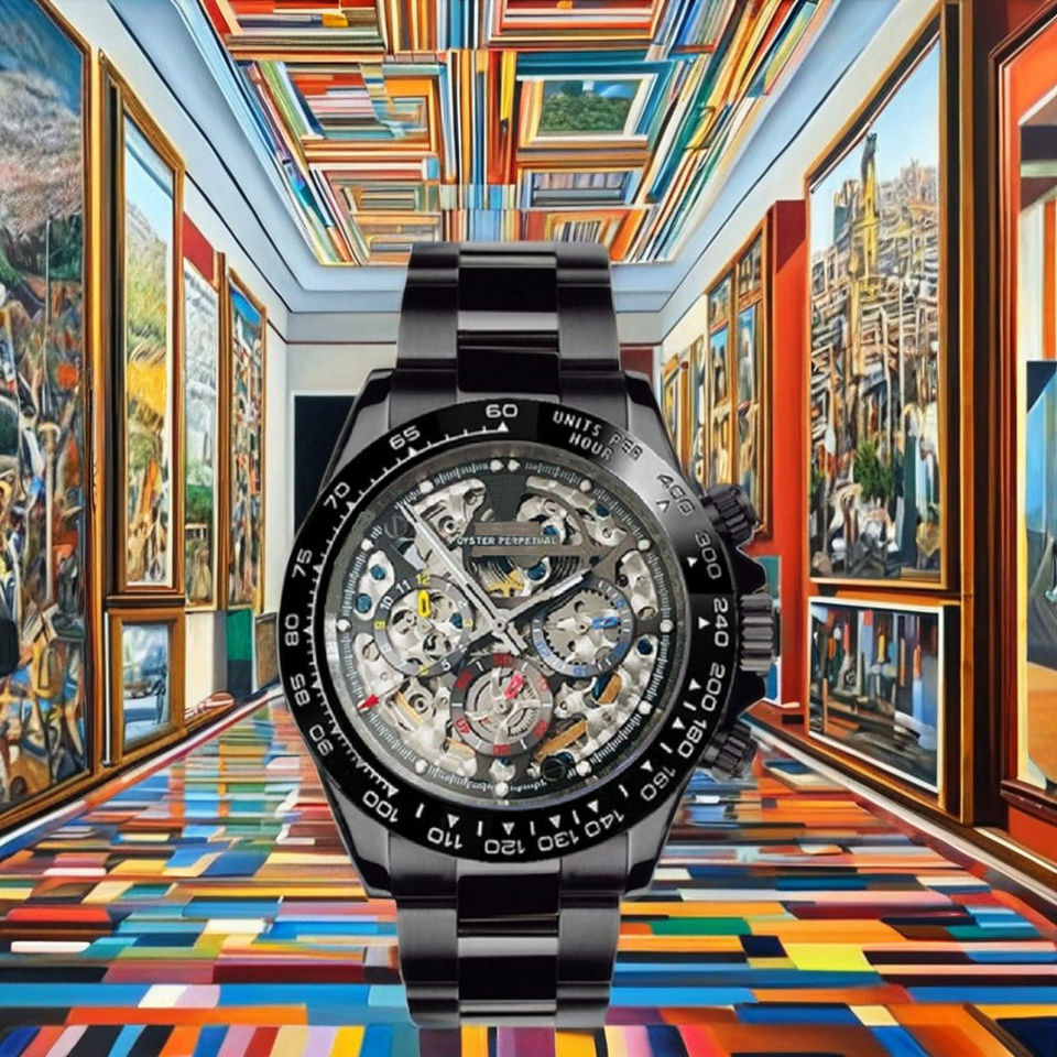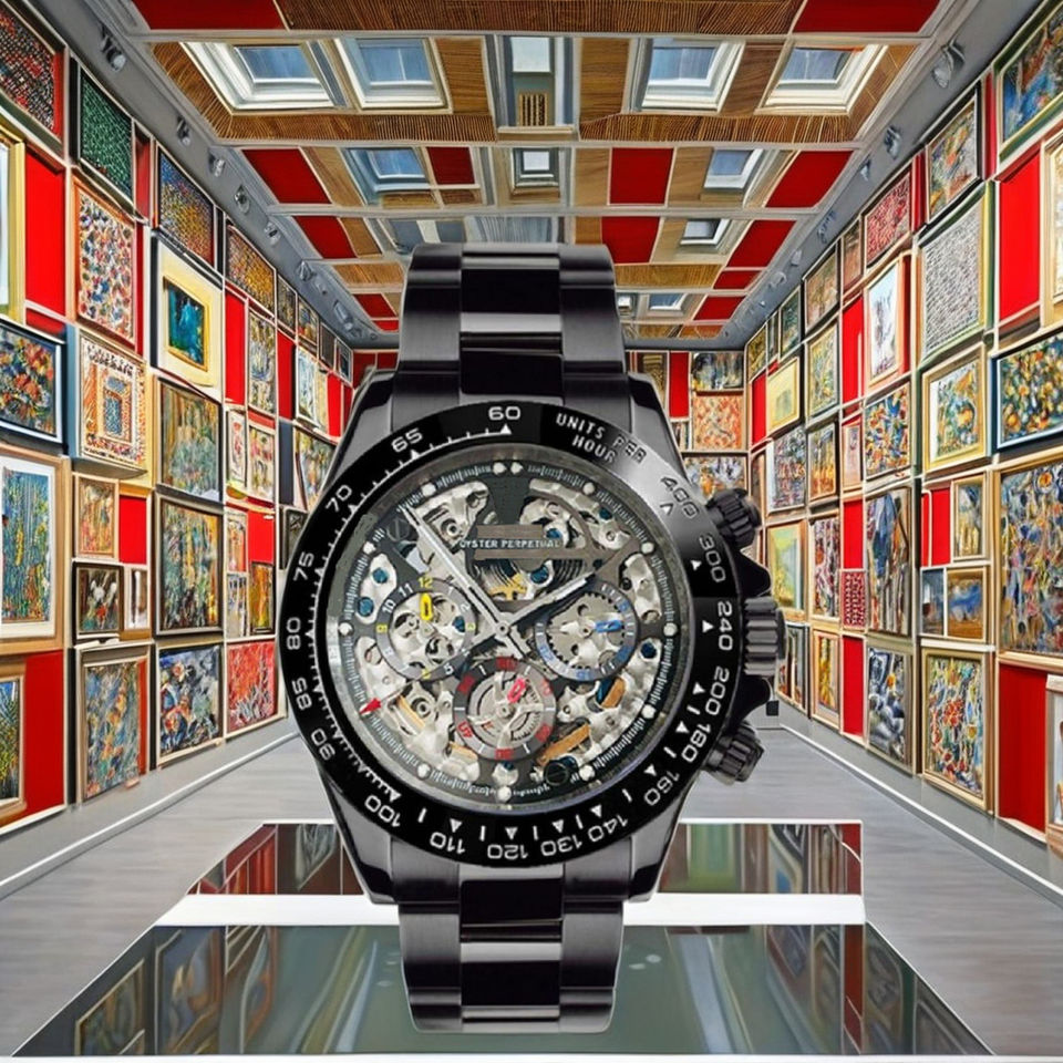 Black Finish Mechanical Watch Skeleton Dial Stainless Steel Hidden Luxury Design High Quality Black Tachymetre Modern Vintage