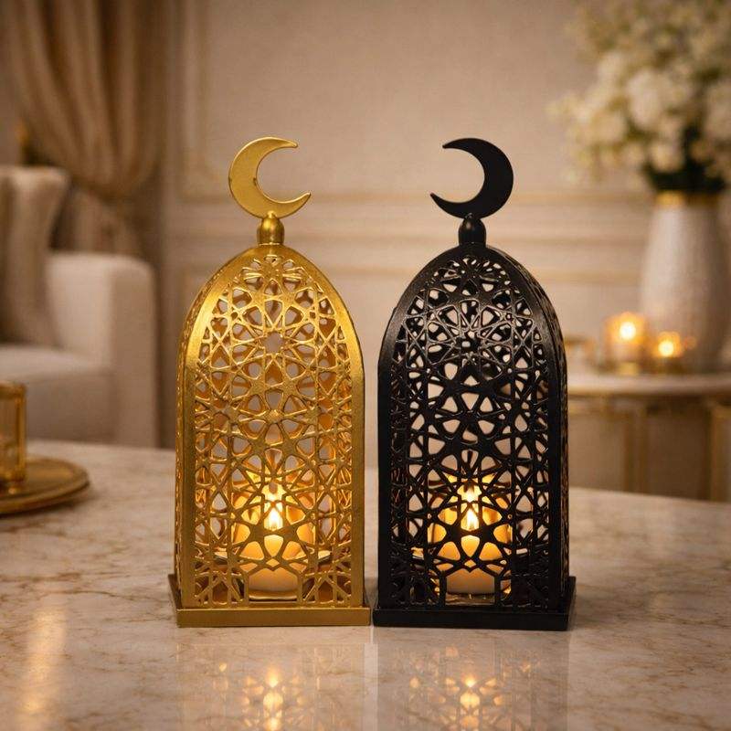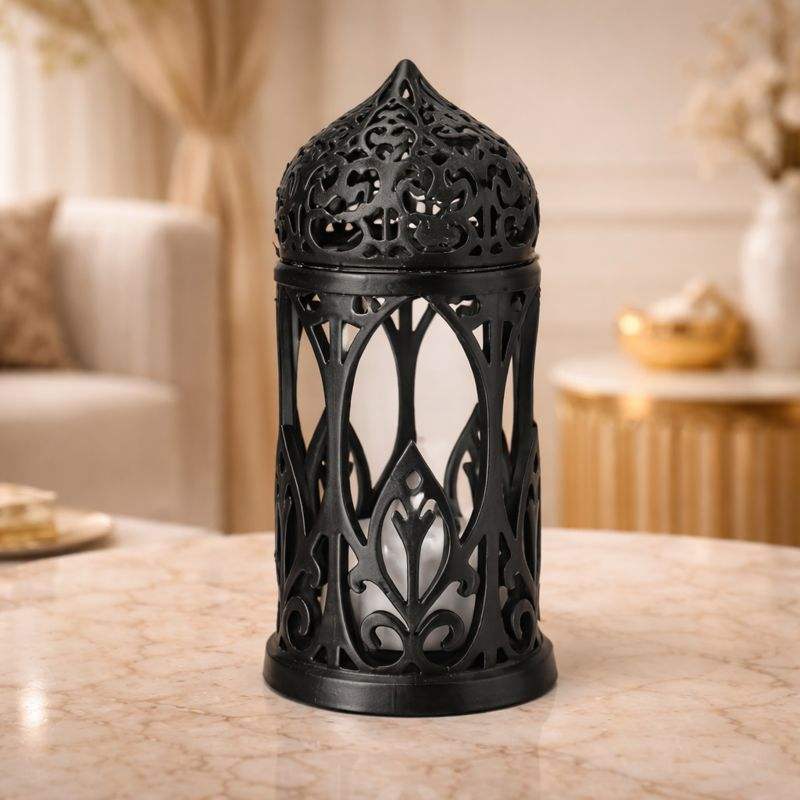 Black Finish Metal Moroccan Lantern Elegant Cutwork Design Soft Candle Glow Perfect Festive Home Decor and Gifting