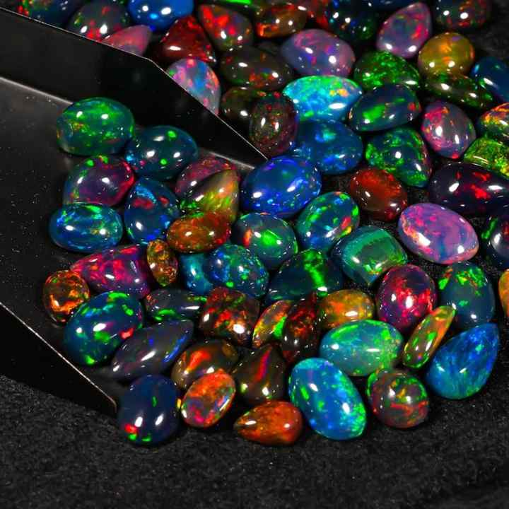 Black Fire Opal Cabochon Lot Stone Bright Multi Colour Fire Ideal