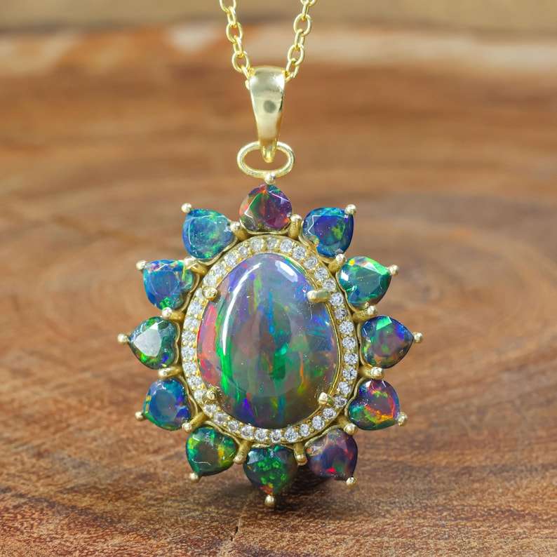 Keyword:Genuine Flower Blue Fire Opal Silver Pendant