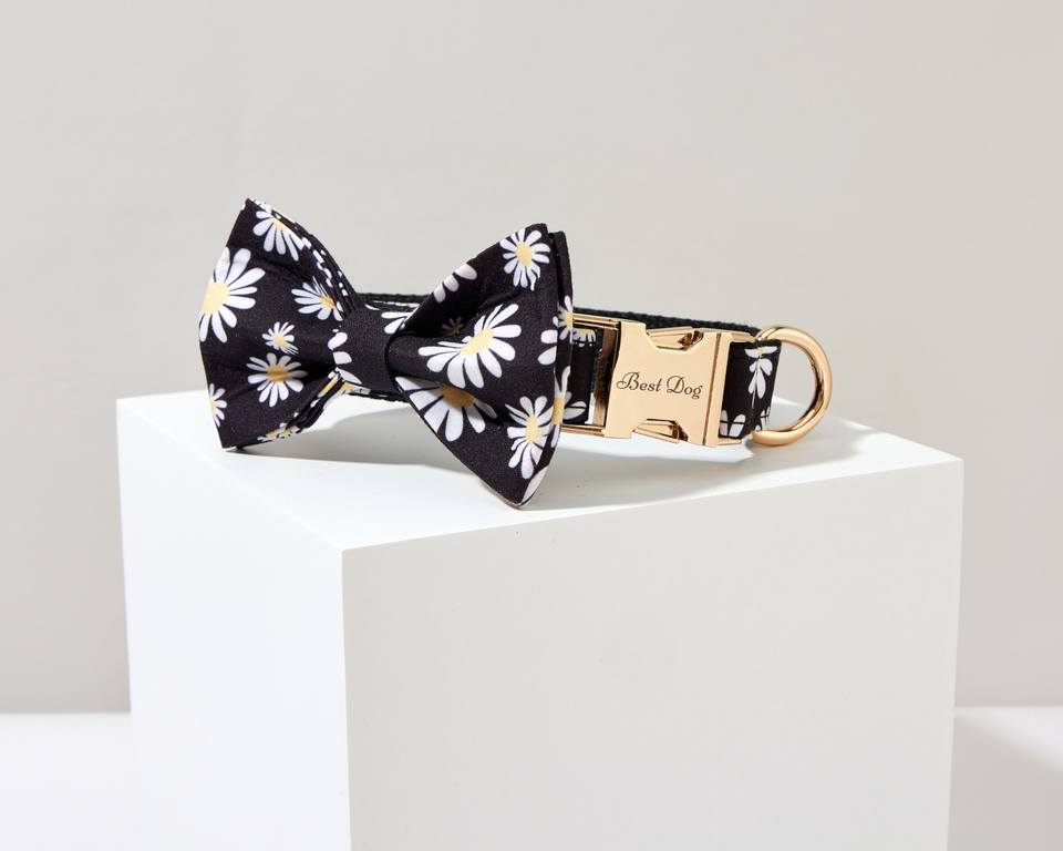 Black Floral Personalized Bow Tie, For Girl Dog, Wedding Dog Collar,Puppy Collar And Lead Bow, UK Free Shipping