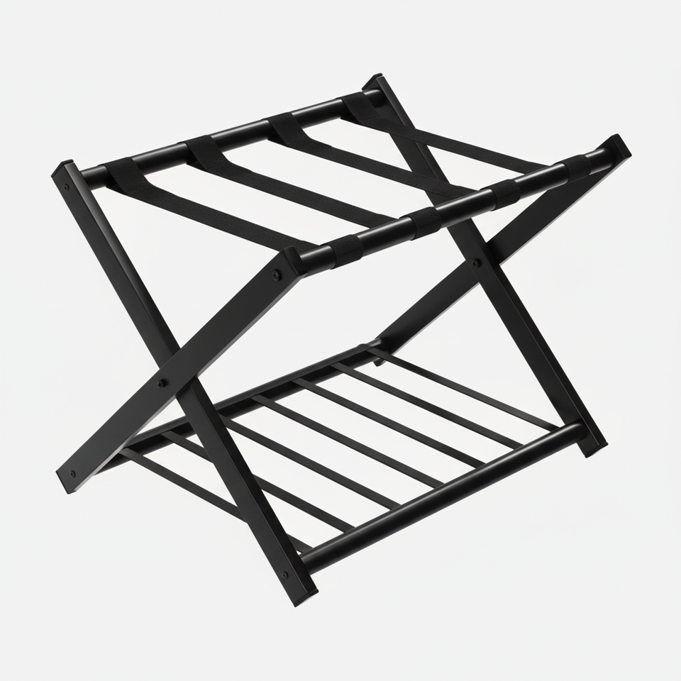 Black Folding Metal Luggage Rack with Shelf for Suitcases