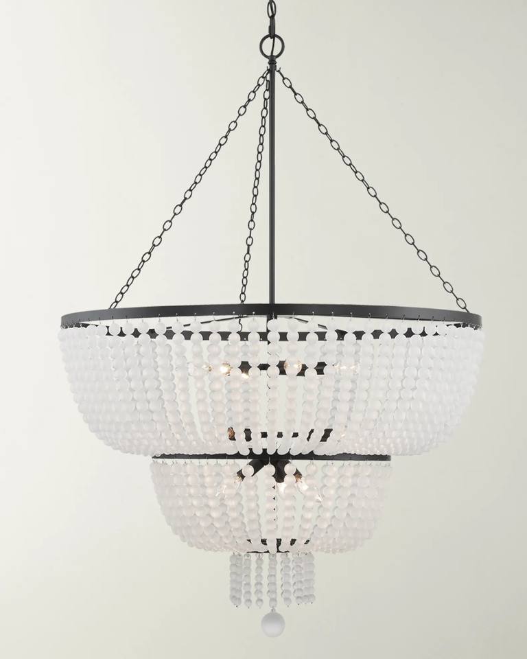 Black - Framed White Beaded Tiered Chandelier, Bohemian Vintage Lighting for Living & Dining Rooms