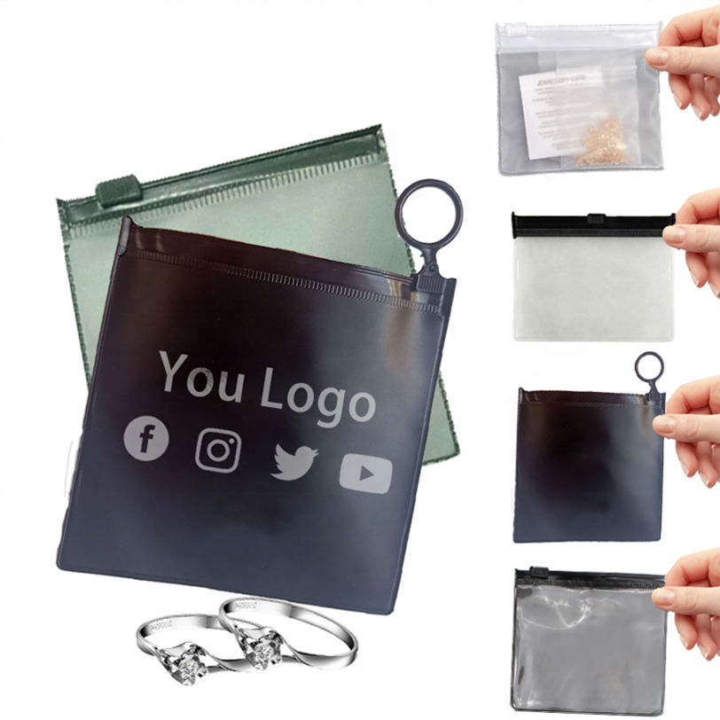 Black Frosted Zipper Bags Personalized Waterproof Pvc Jewelry Bags Polyester Zipper Pvc Bag with Zipper Custom logo with Handle