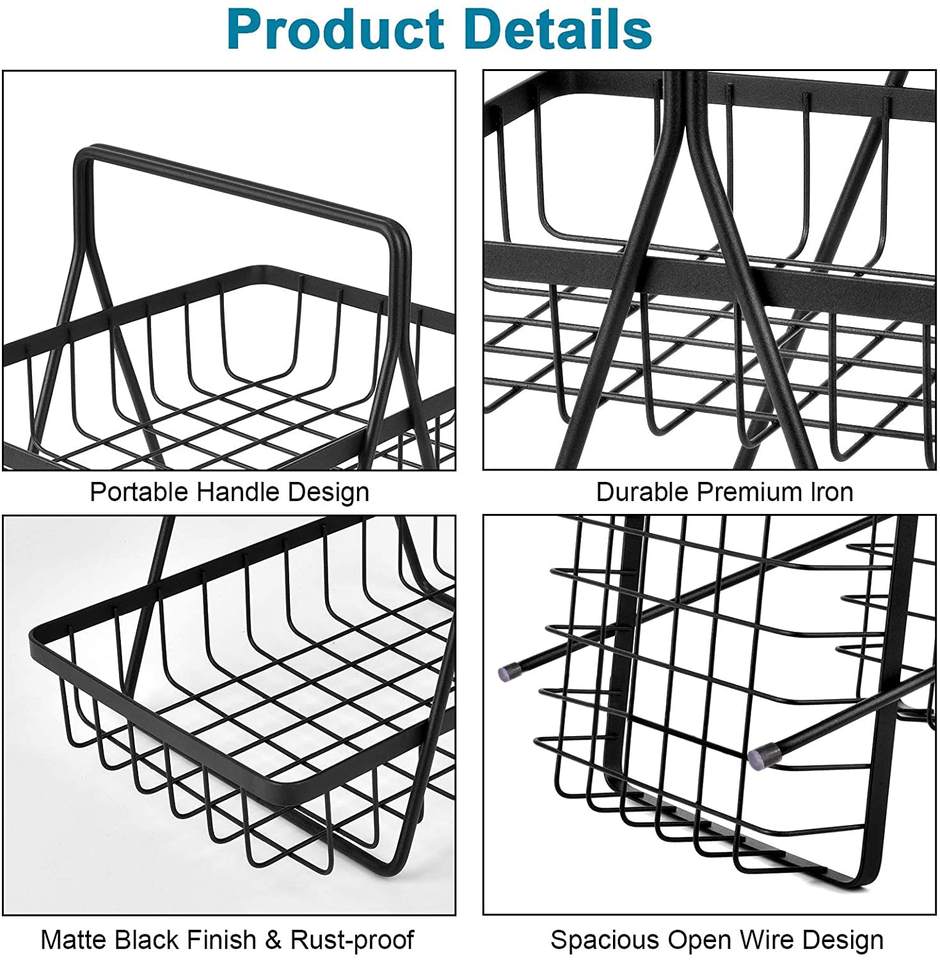 Black Fruit Basket Stand Metal Fruit Basket Countertop Fruit Organizer Vegetable Storage Basket Elegant Home Organization