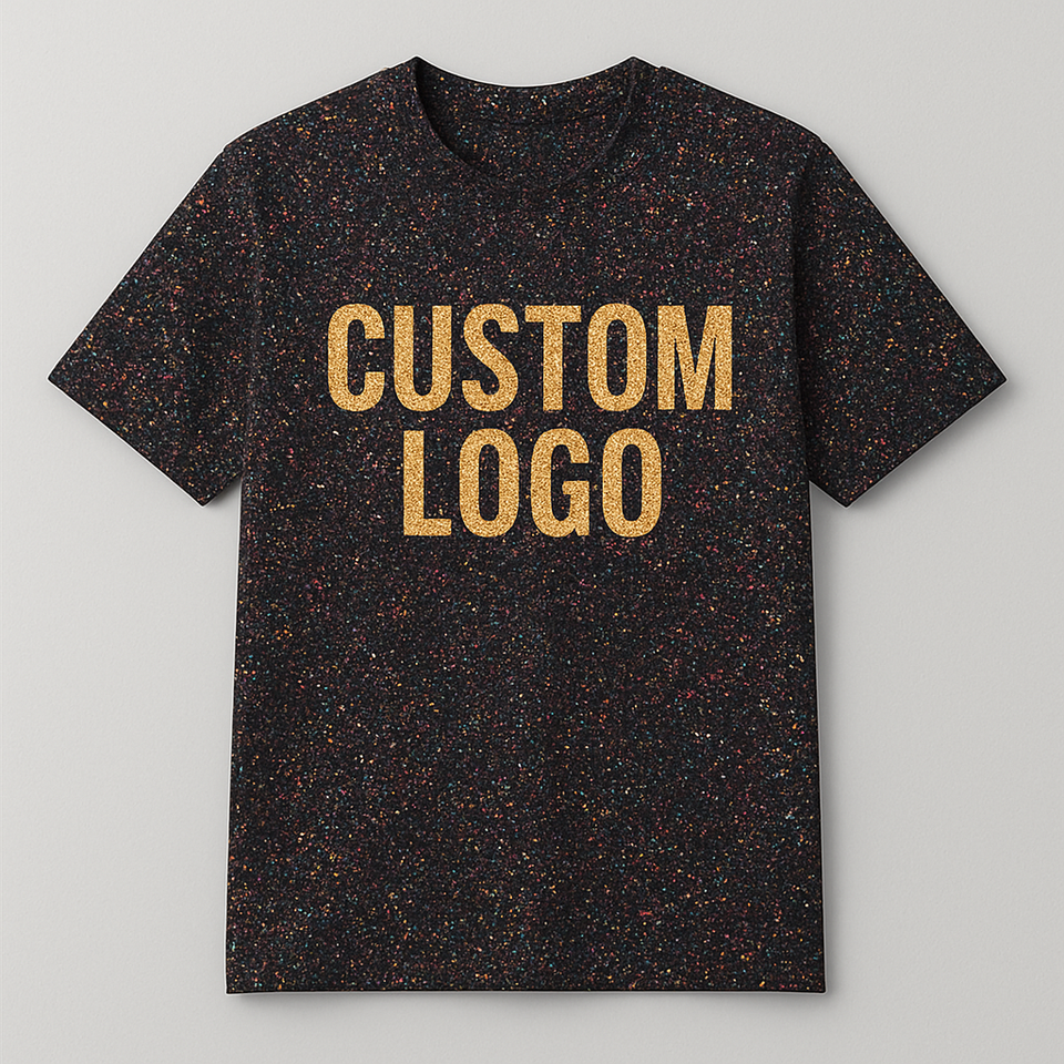 Black Glitter Print Turtleneck Custom Graphic T Shirt Short Sleeve Casual Vintage Regular Fit Streetwear Fashion 100%Cotton