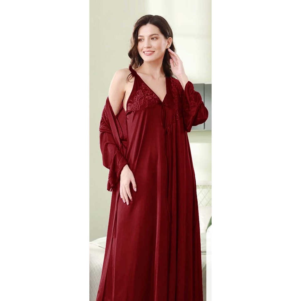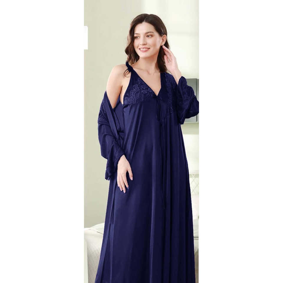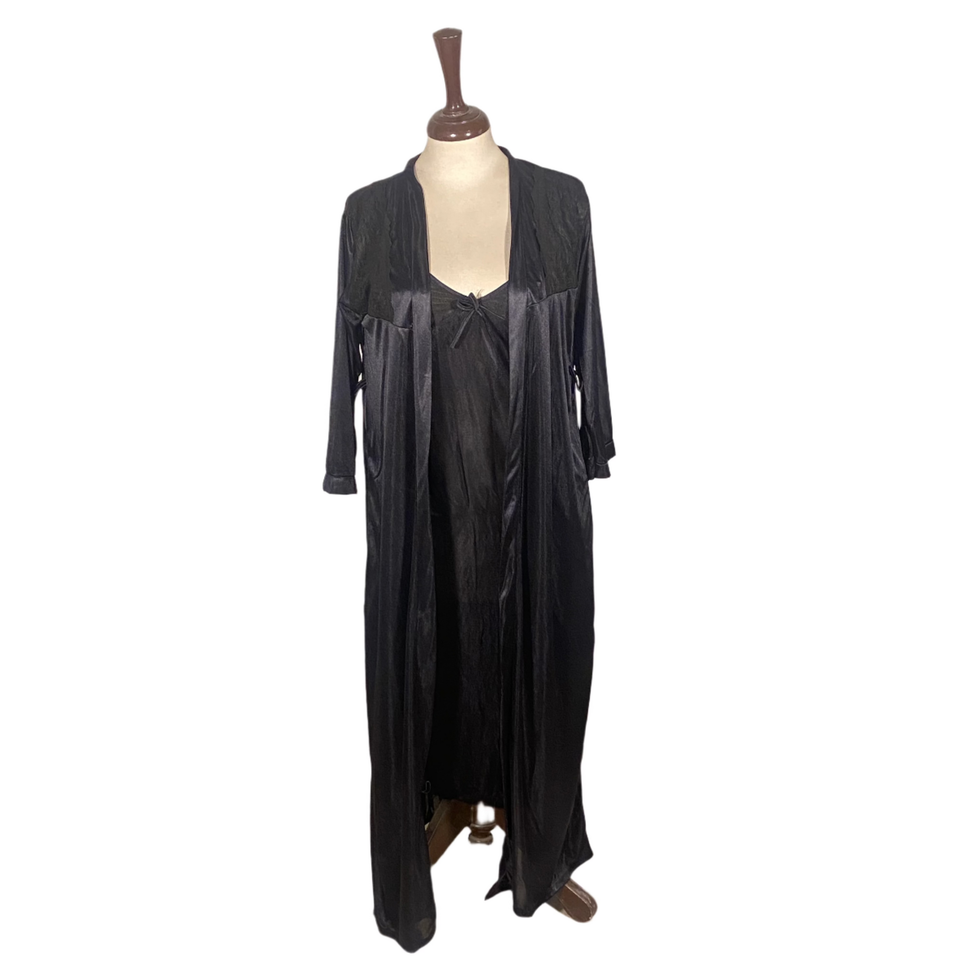 Black Full-Length Bridal Nighty Women's Sleepwear for Special Occasions-Cami & Gown with Ribbon