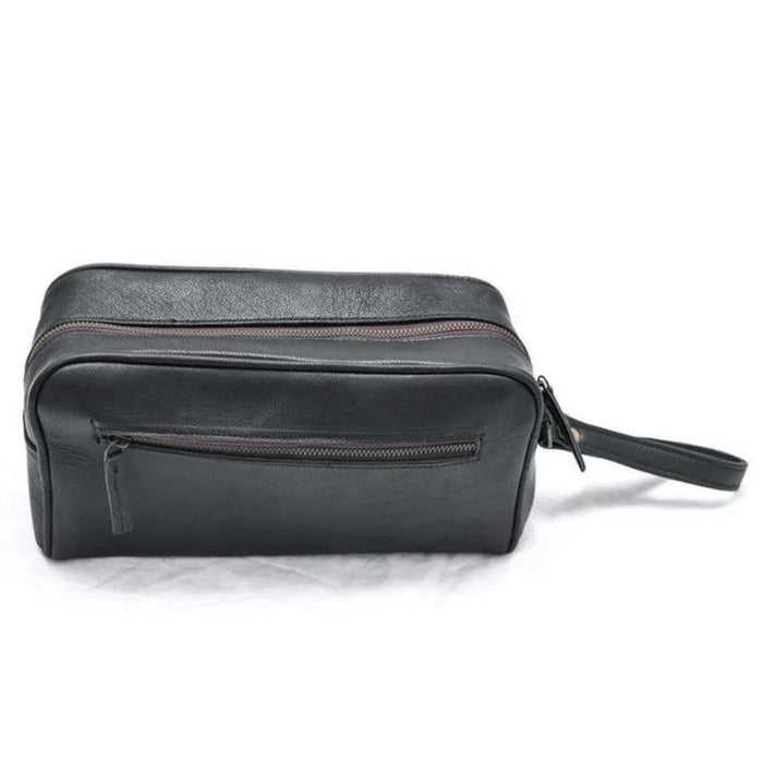 Black Genuine Leather Vintage for Case Mens Dopp Kit Travel Shaving Bag Organizer Wash Bag Handle Zipper for Accessories