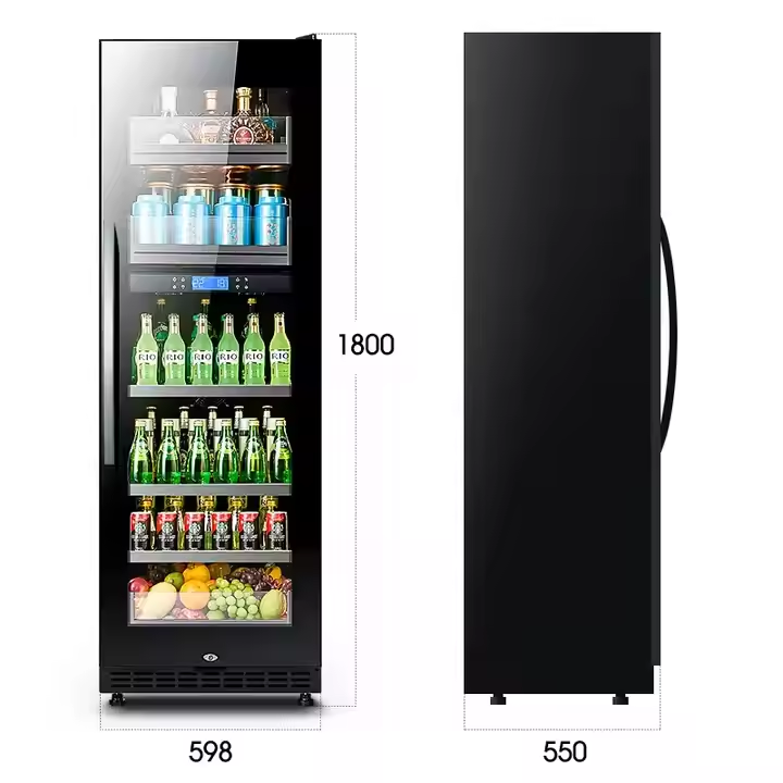 Black Glass Under the Counter French Style Door Beer Soda Beverages Refrigerators