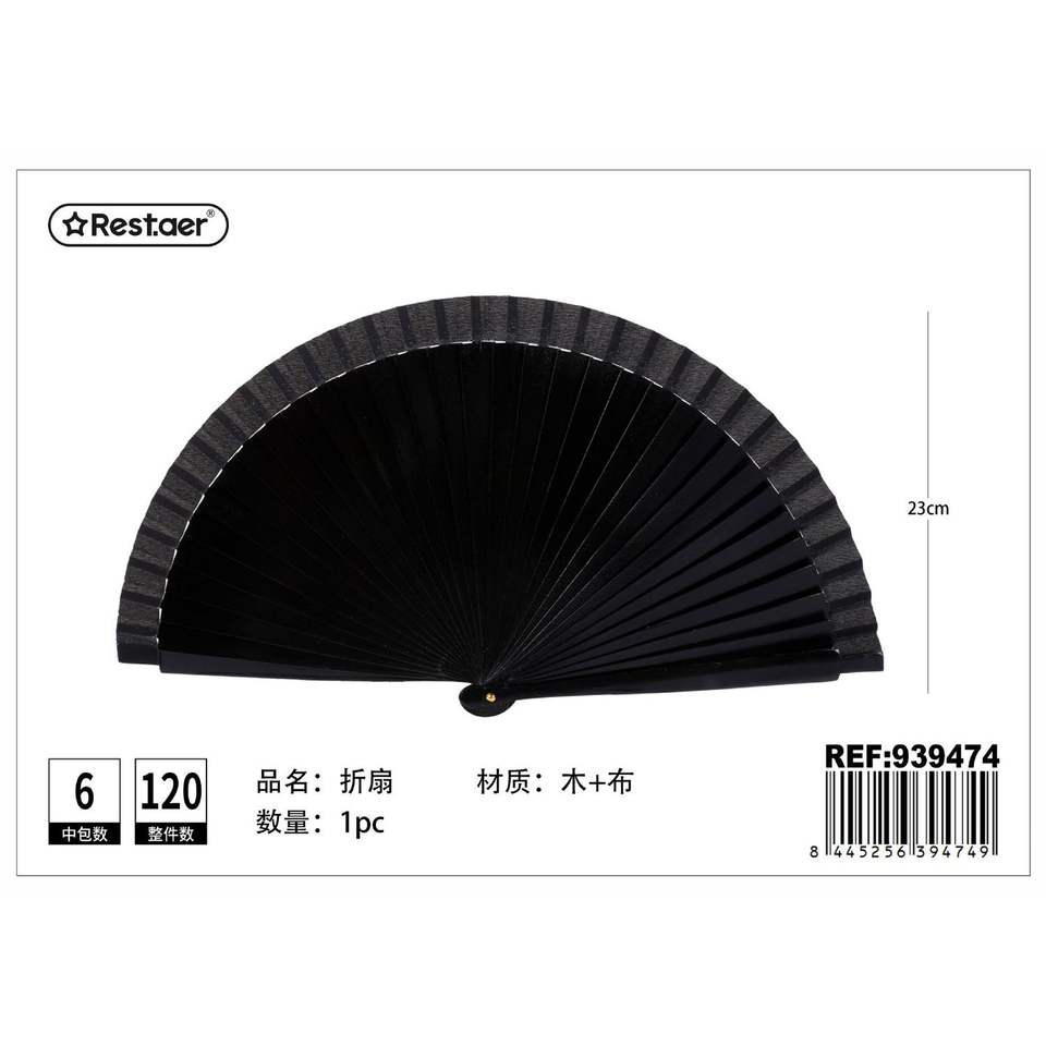 Black Glossy Wooden Fan Seasonal Fashion Accessories for Decorative Purpose