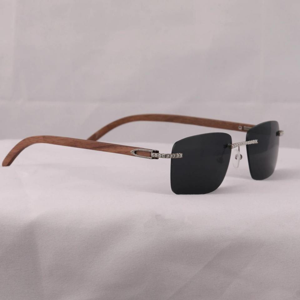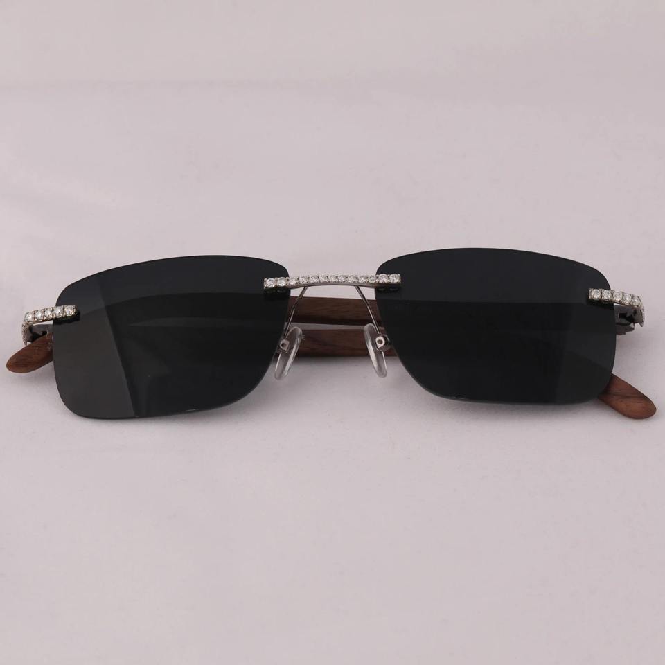 Black Unisex Gradient Anti-Radiation Rimless Frame Sunglasses with Moissanite Diamonds for Everyday Luxury Wear