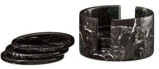 Black Gold Marble Coaster, Marble coaster Set of 6, Marble Stone Coaster Set with Holder
