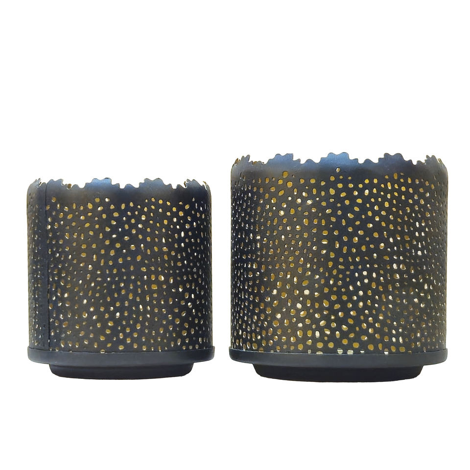 Black Gold Metal Candle Holder Set Decorative Perforated Votive Tealight Holder for Home Living Room Bedroom and Festive Decor