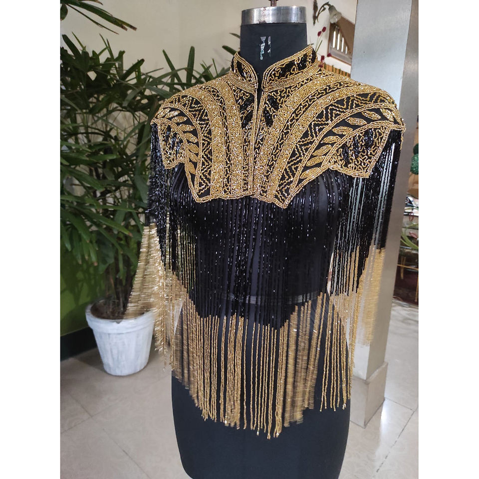 Black-Gold Sweet Embroidery & Beading Designer Poncho for Parties-ODM Supply