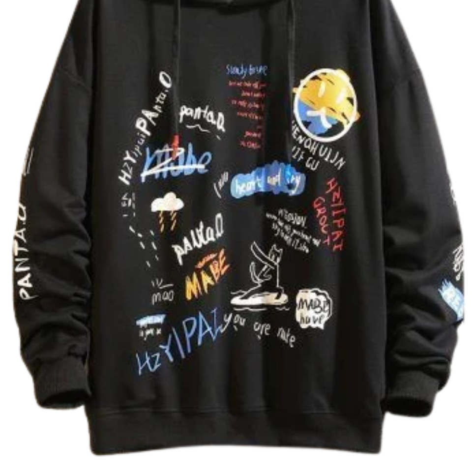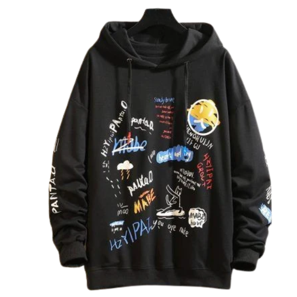 Black Graffiti Print Hoodie Men Women Oversized Streetwear Cotton Pullover Fashion Fleece Casual Artistic Design Sweatshirt Sale