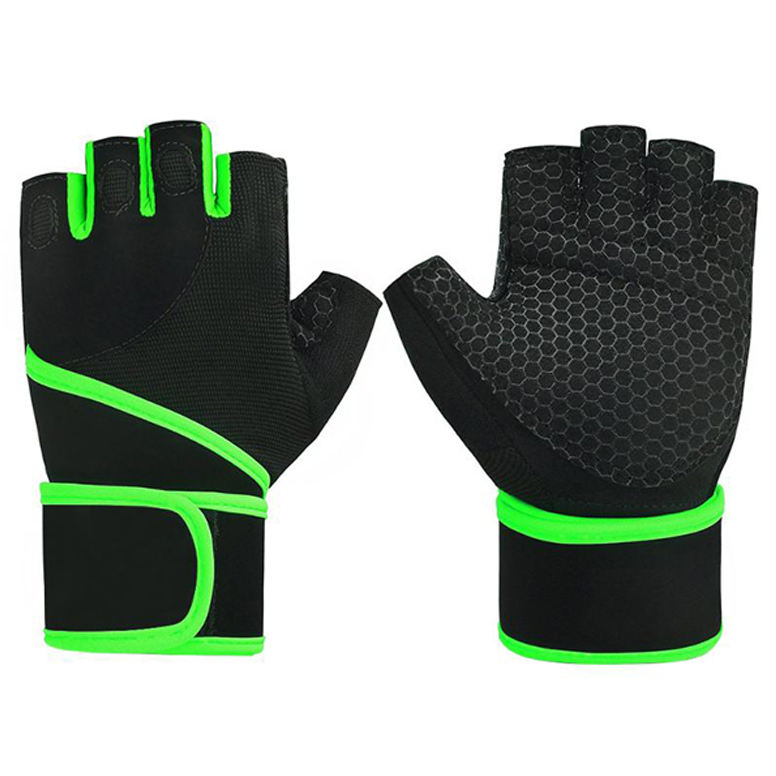 Black Green Gym Gloves Wrist Wrap Non Slip Breathable Weight Lifting Fitness Training Workout Exercise