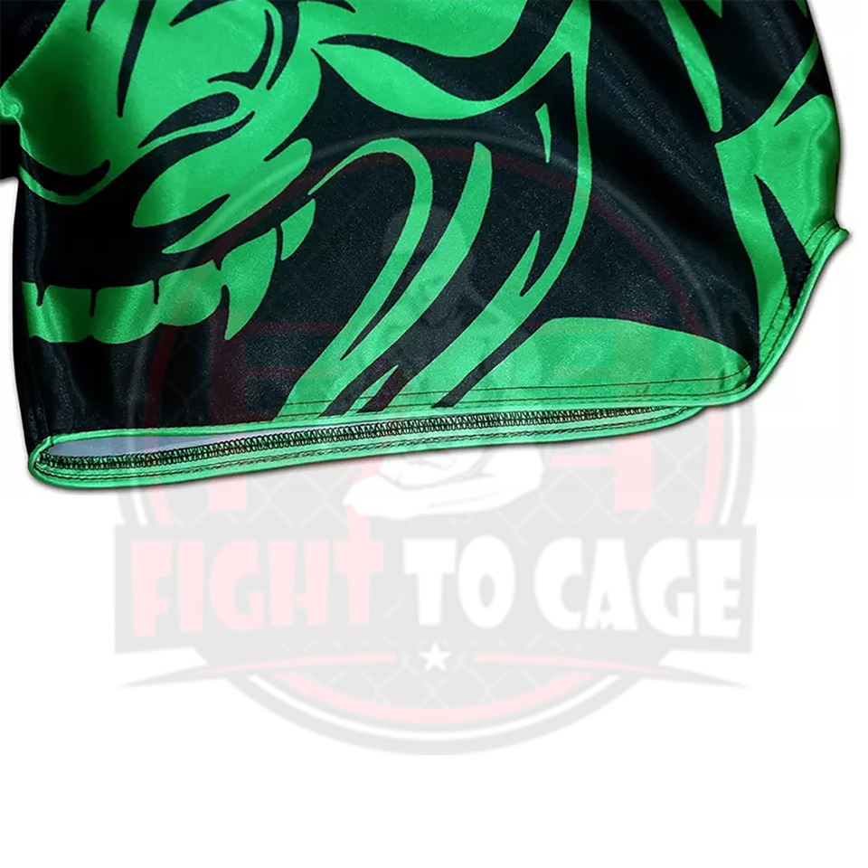 Black Green Printed Stretch Breathable Lightweight 100% Polyester Muay Thai Boxing Shorts for MMA Training