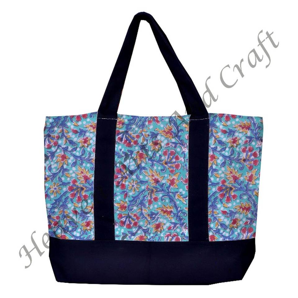 Block Print Black Handle Tote BagPattern