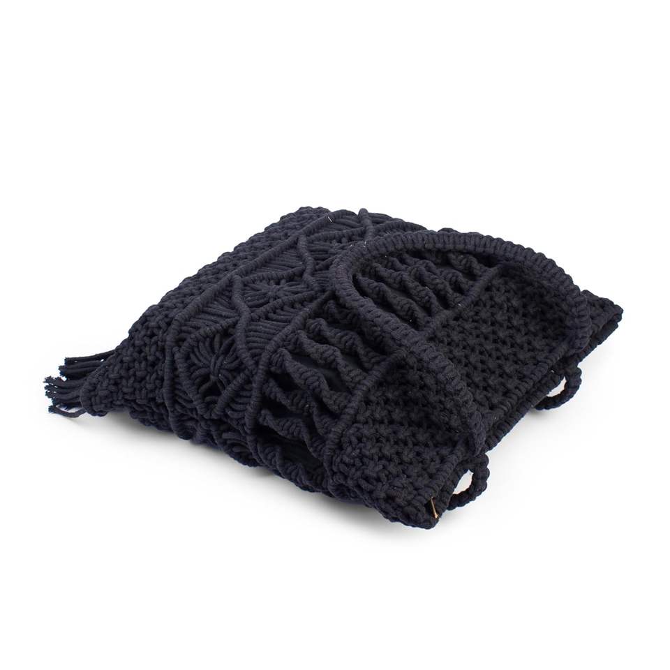 Black Handmade Cotton Rope Bag Vintage Crochet Macrame Beach Purse Ladies Clutch Tassel Handbag
