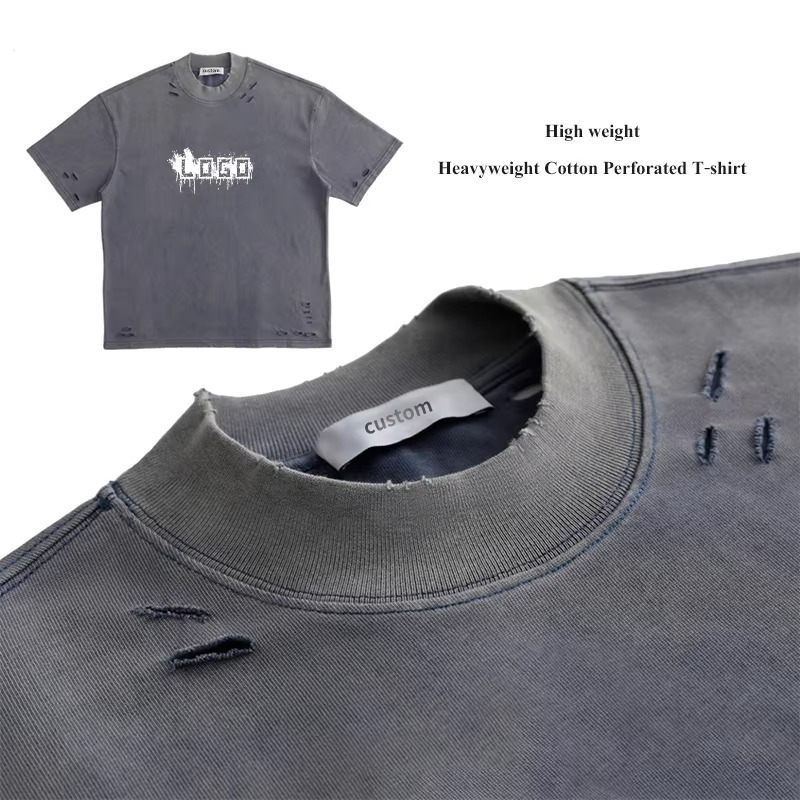 Black Heavy Weight Vintage Distressed 100% Cotton Custom Oem Clothing Graphic Oversized Washed Tees T-Shirts Acid Wash T Shirt