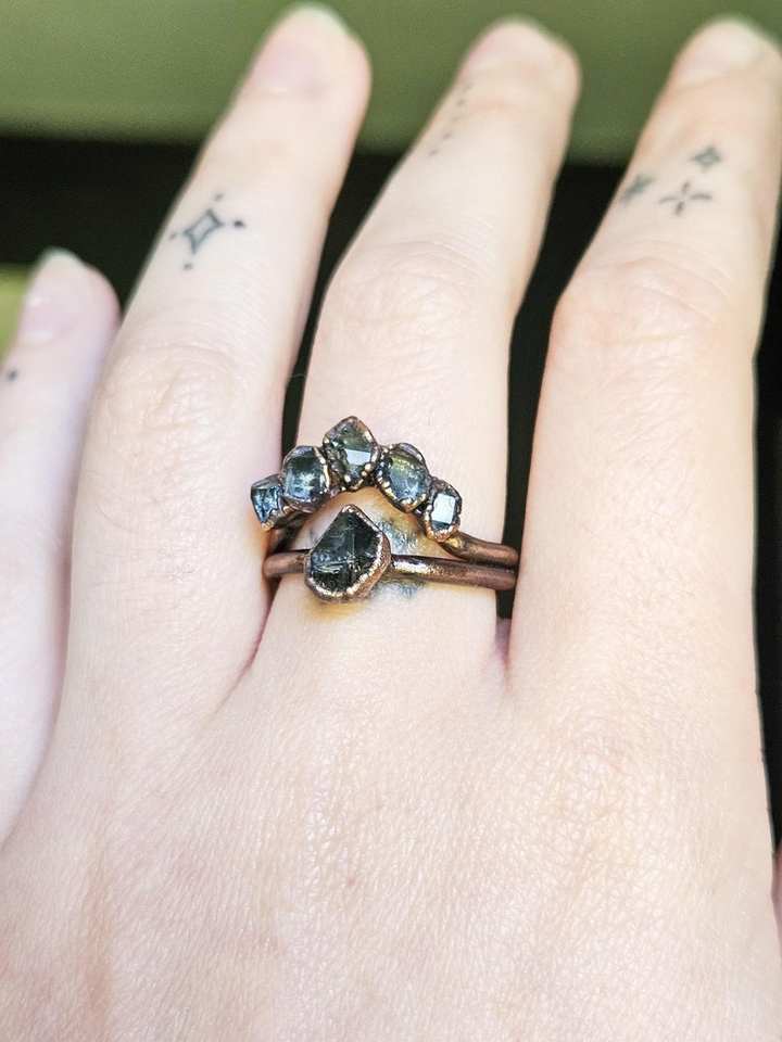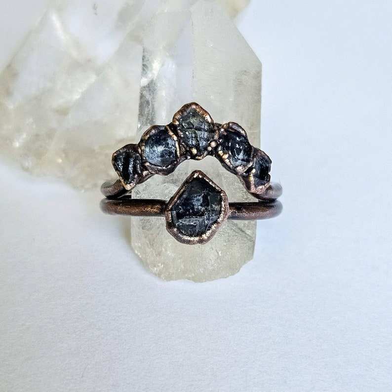 Black Herkimer Diamond Ring Set Copper Electroformed Ring Alternative Engagement Ring Raw Stone Ring Diamond Ring Set Women Gift