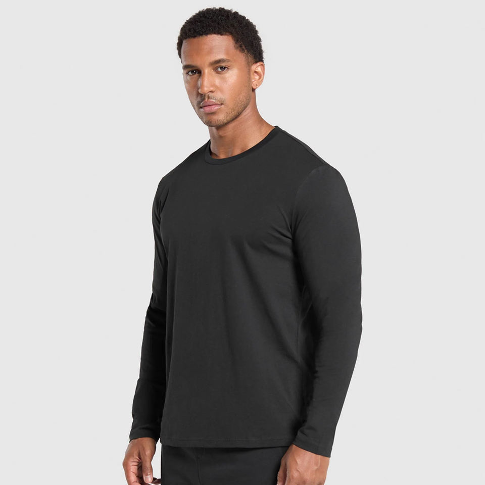 Black High Quality Long Sleeve T-Shirt Custom Logo Print Streetwear 100% Cotton Eco-Friendly Breathable for Men