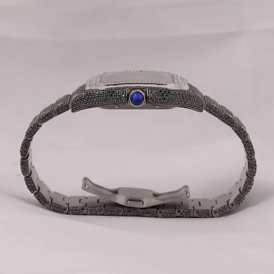 Black High Quality Moissanite Diamond Studded Luxury Mens Quartz Watch Stainless Steel Case ETA Movement 3BAR Water Resistant