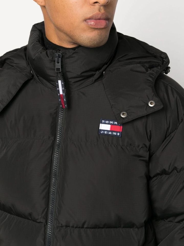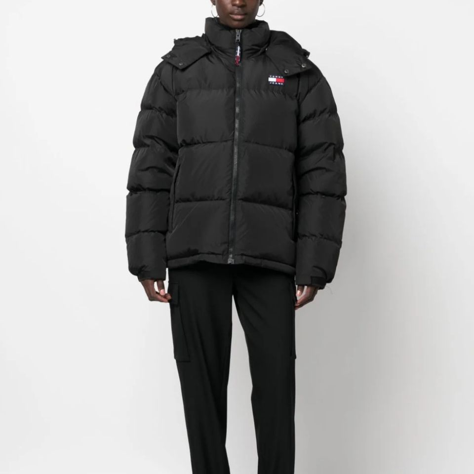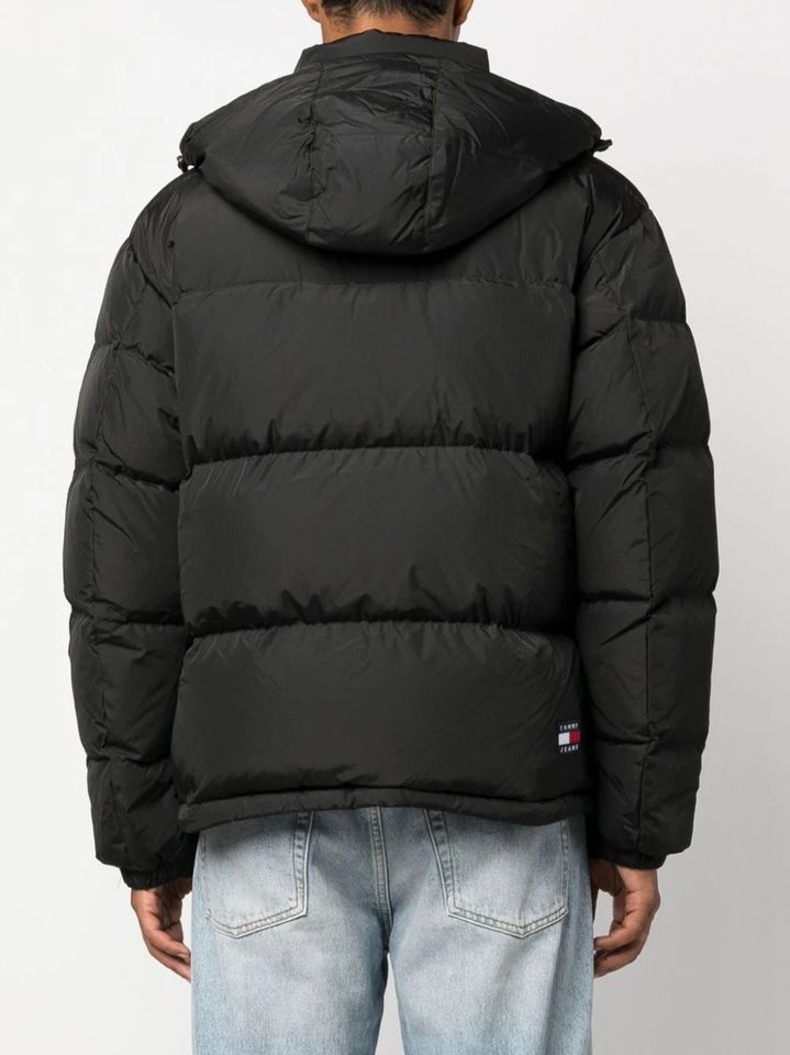 Black Hooded Full-Sleeve Puffer Oversized Winter Jacket Waterproof Embroidered Eco-Friendly Suitable for Rain Cold Weather