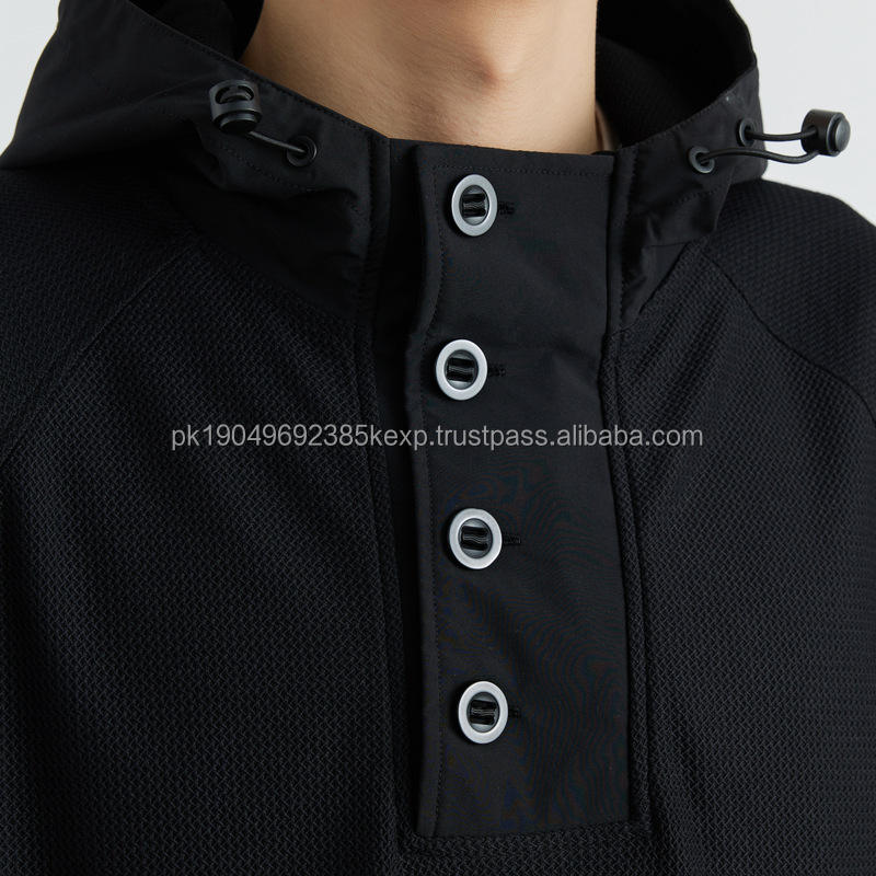 Black Hooded Sweater Coat Private Label Men'S 14 Button Hoodie Pullover Long Sleeve Hoodie