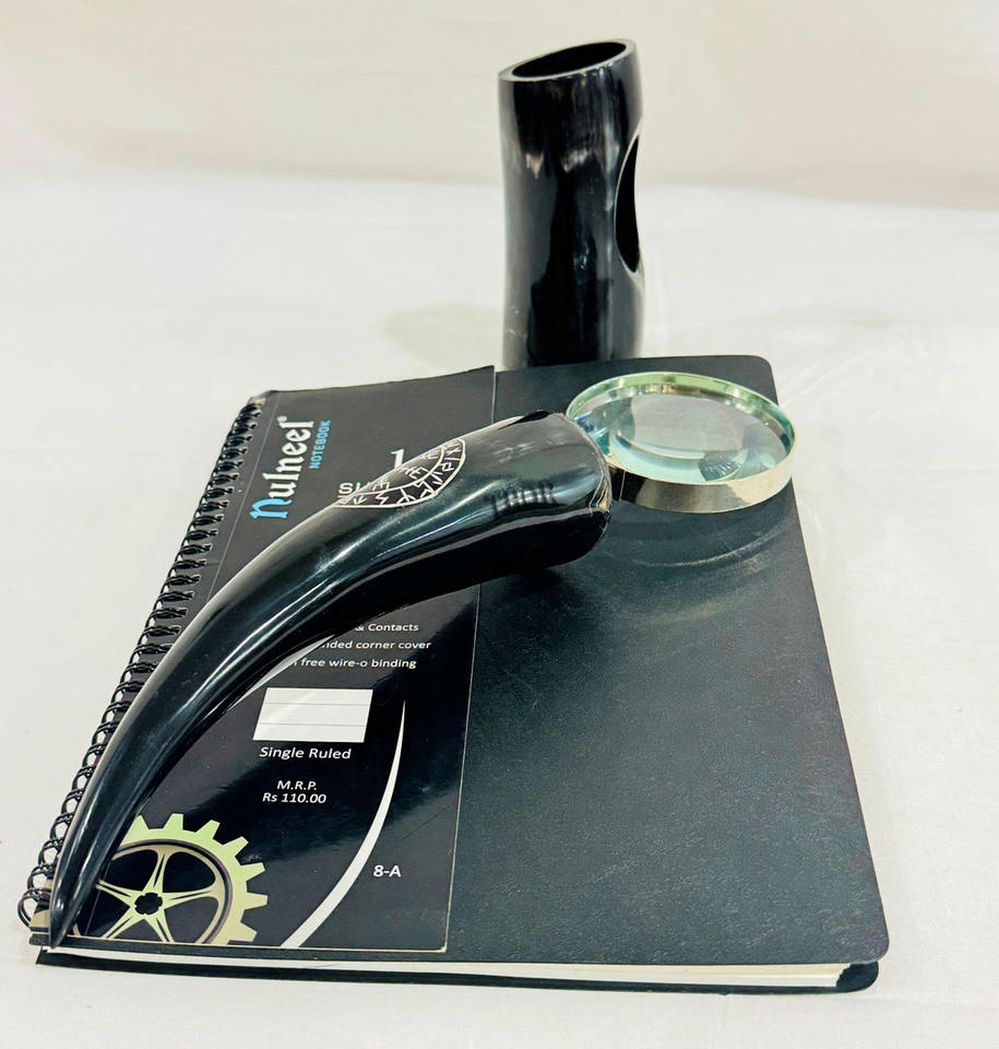 Black Horn Magnifying Glass Large Size Real Horn Magnifying Glass with Carved Norse Sign Handheld Reading Magnifying Glass