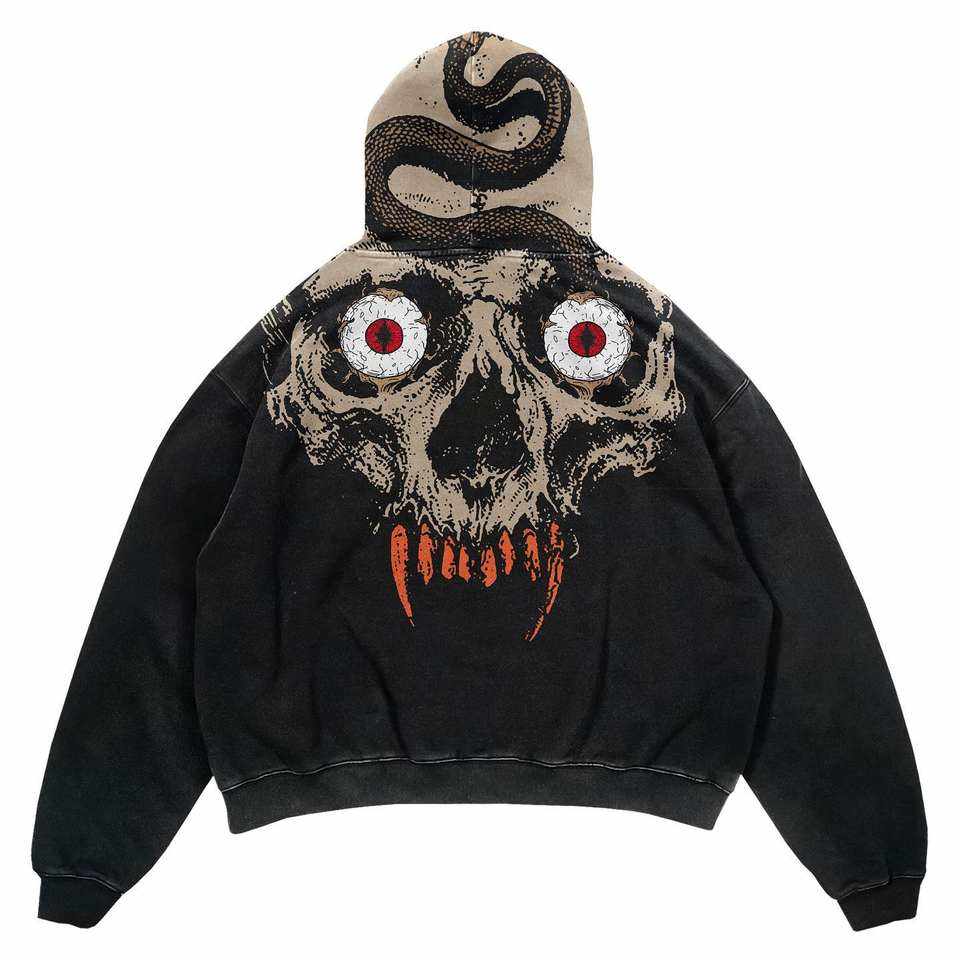 Black Horror Skull Hoodie Men Women Unisex Streetwear Pullover Long Sleeve Warm Fleece Graphic Fashion Top