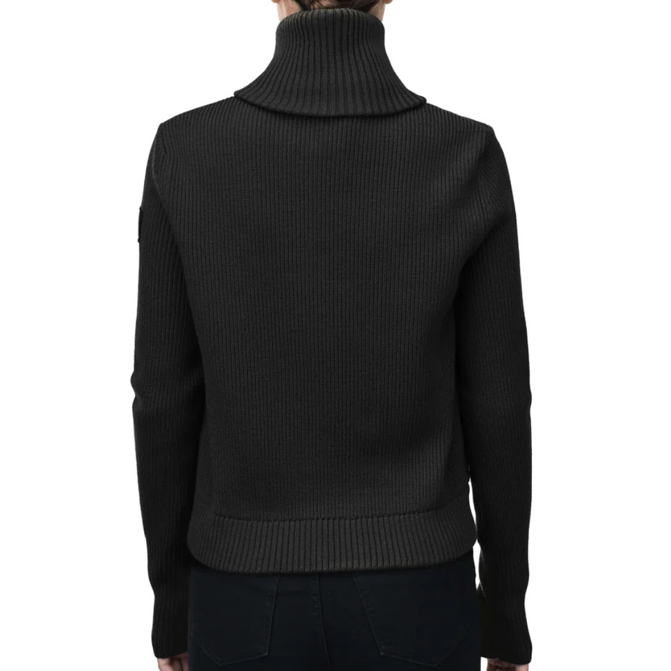 Black Hybrid Knit Eco-Friendly Polyester/Wool Blend Quilted Front Full Zip High Neck Stretch Sleeves Modern Winter Jacket