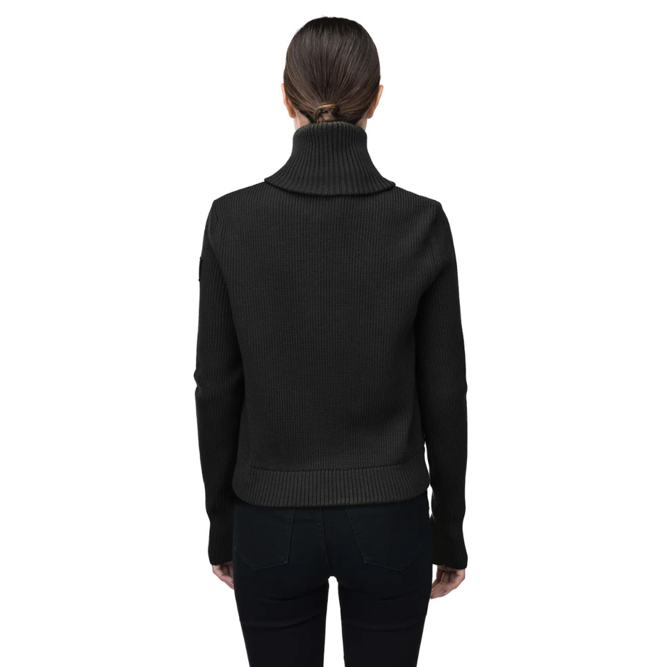 Black Hybrid Knit Jacket for Women Quilted Front Full Zip High Neck Stretch Sleeves Modern Winter Layering Wear