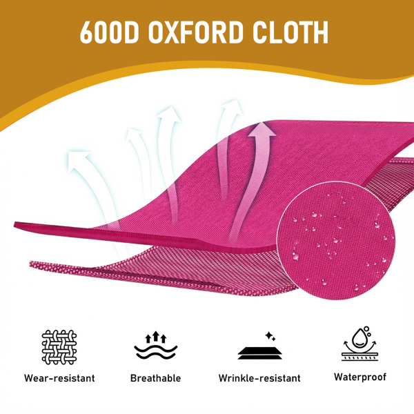 Black Iron Frame Sun Lounger 140x60x87cm Pink Oxford Cloth
