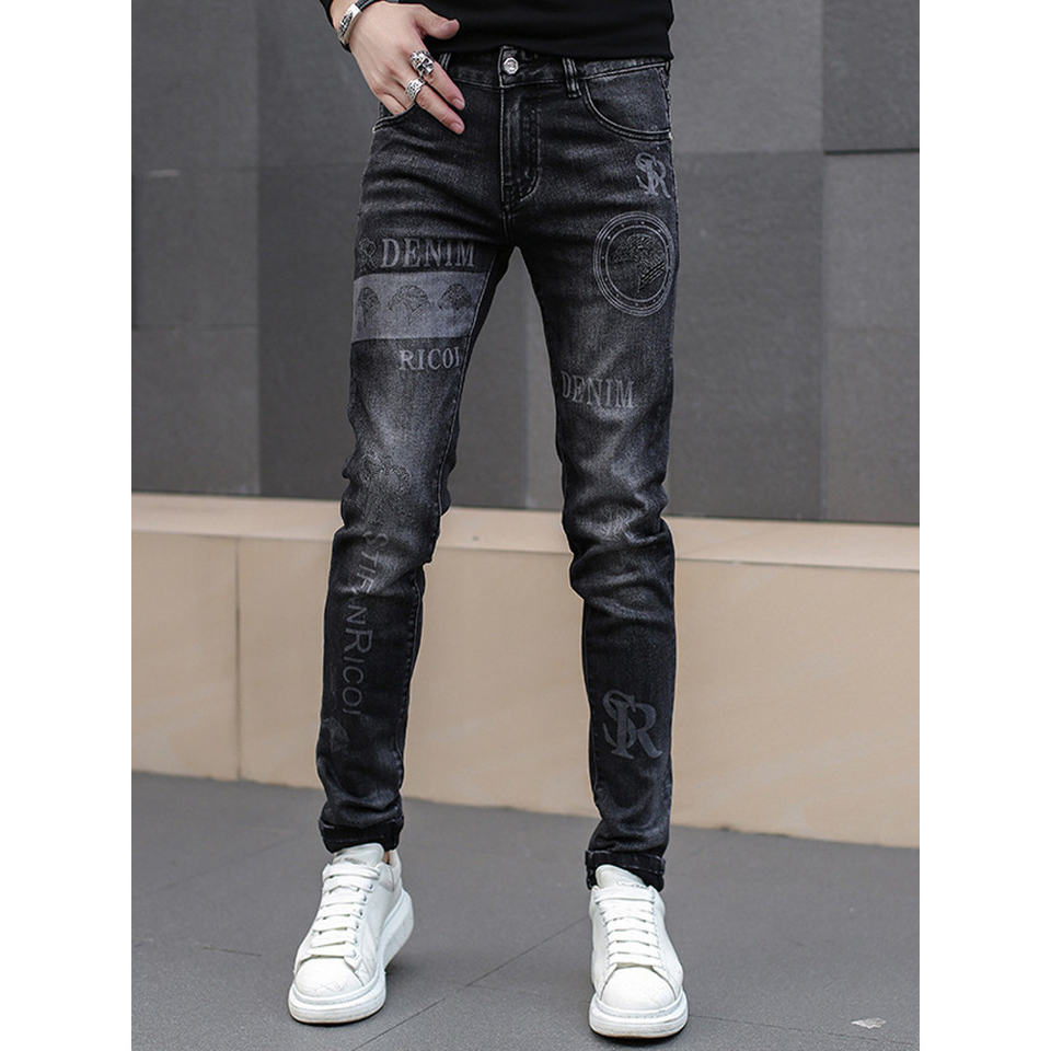 Black Jeans for Men Fashion Street Hip-Hop Male Punk Style Denim Man Pants Autumn Men Stretchy Slim Fit High Quality Men's Jeans