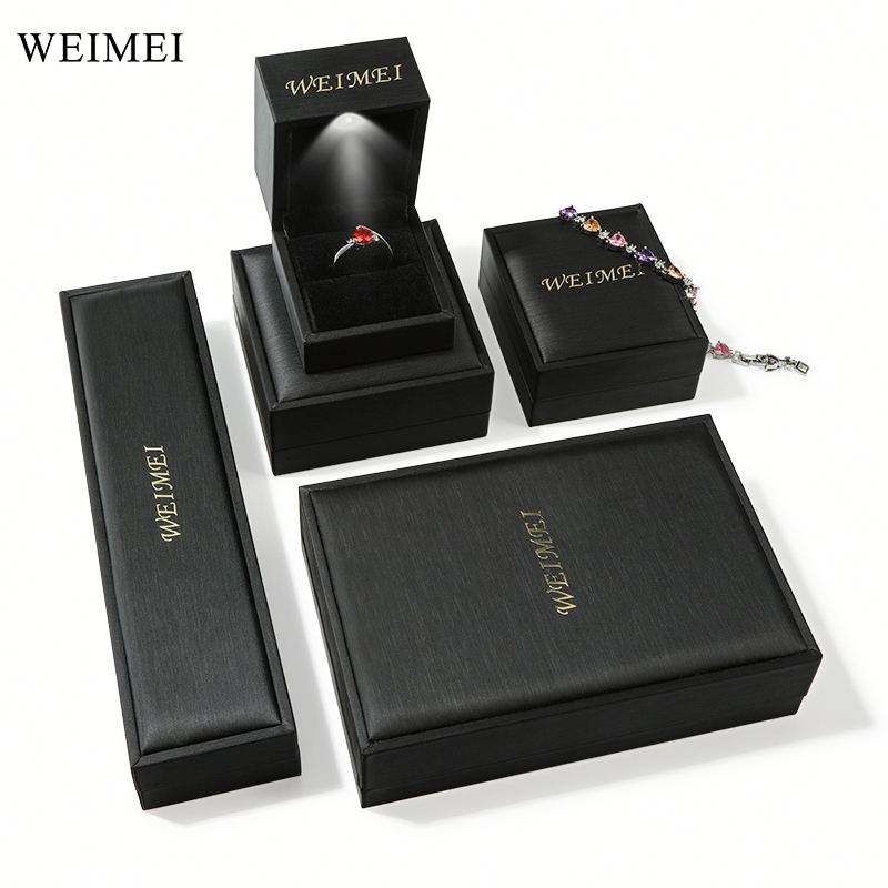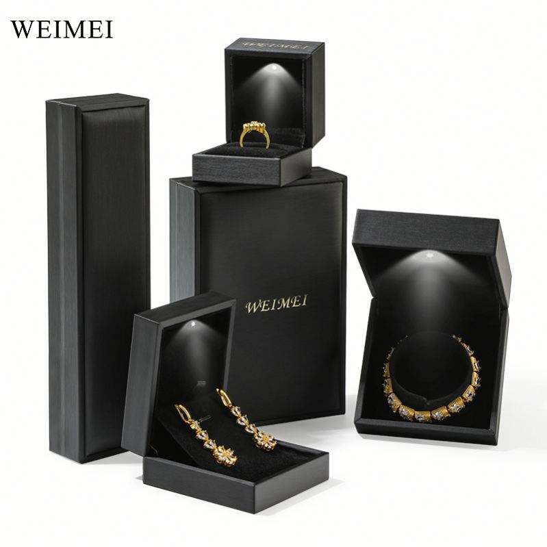 Black LED Jewelry Box with Custom Logo Perfect for Necklace Ring Bracelet Set Box with Light for Stunning Presentation