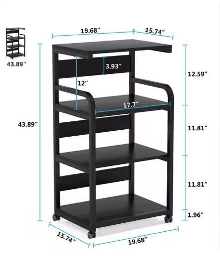 4-Shelf Mobile Printer Stand with Storage Shelves