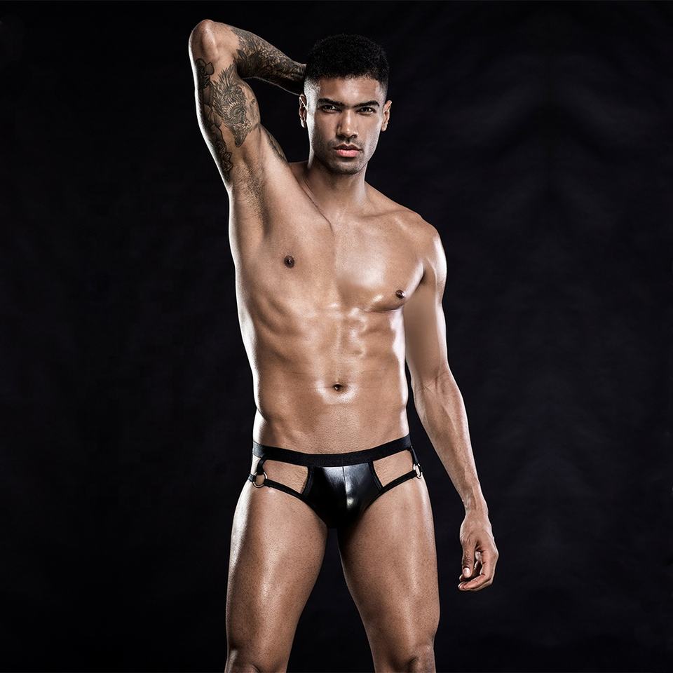 Black Latex Crotchless Panties Open Crotch Sexy Gay Men Underwear