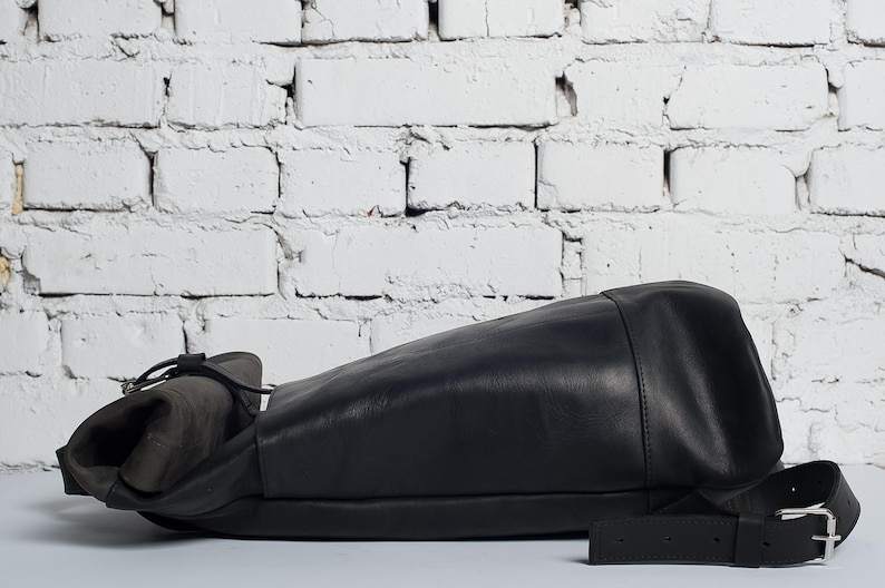 Black Leather Backpack Men Roll Top Backpack Large Travel Purse Laptop Duffle Bag Women Gift For Him LRTB-0022