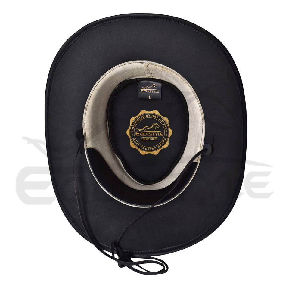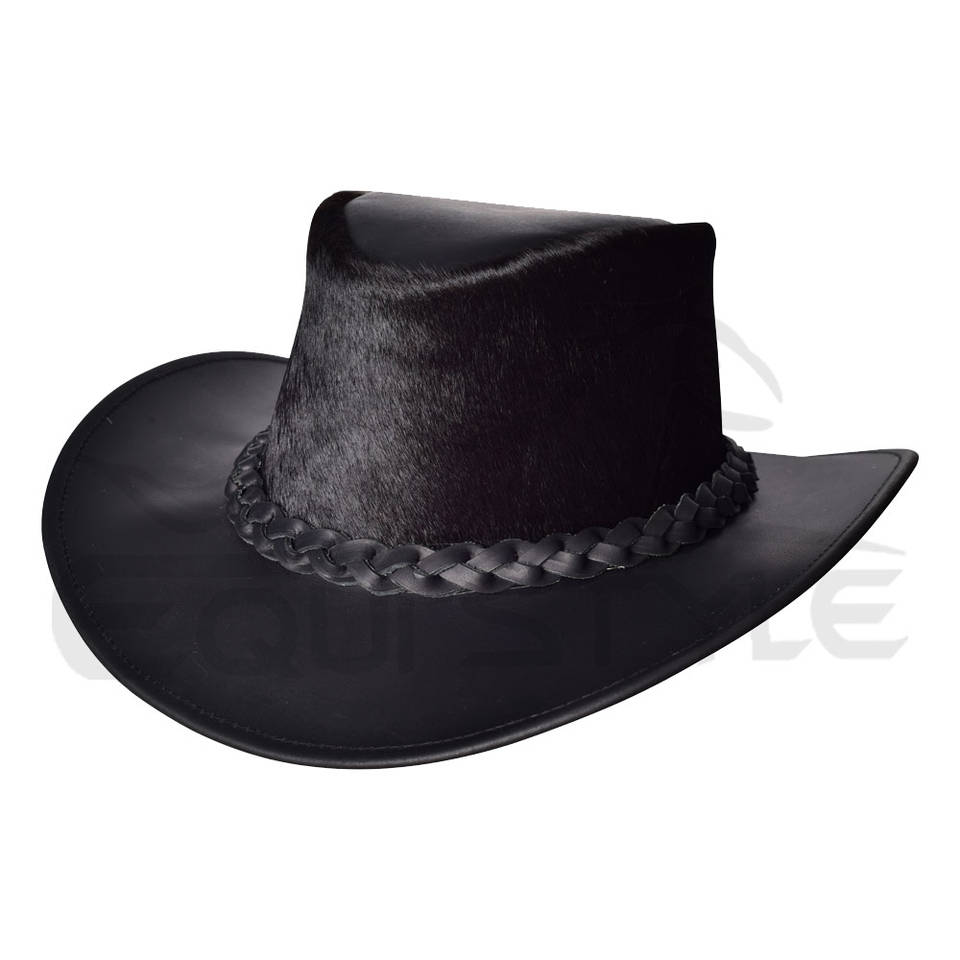 Black Leather Cowboy Hat Hair On Hide Crown Handmade Western Fashion Headwear Bulk Supply OEM High Quality Mens Cowboy Hat