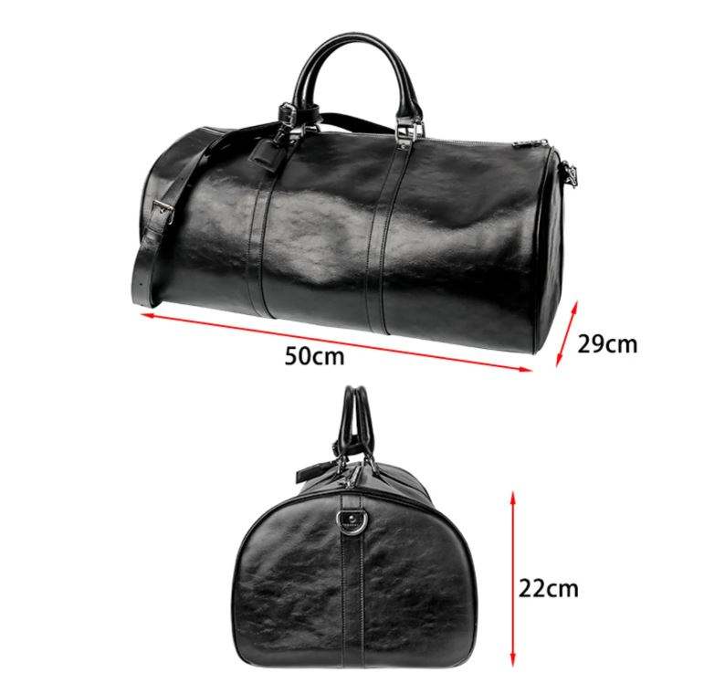 Black Leather Duffle Bag for Him Handmade Genuine Leather Travel Luggage Hand Bag