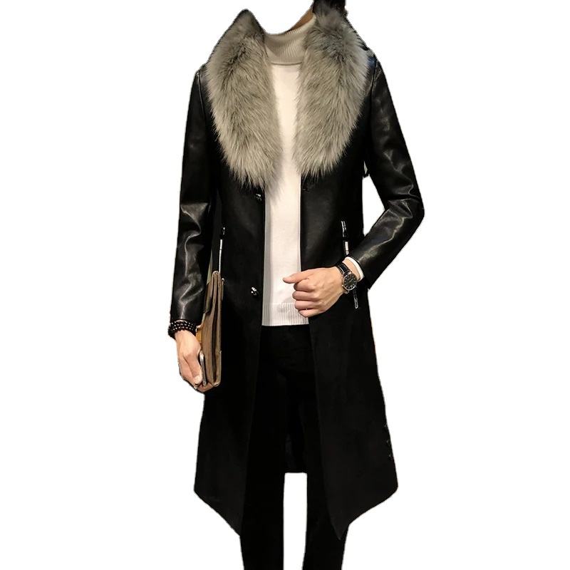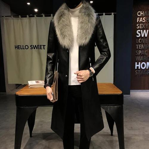 Black Leather Men's Shirts Stand Collar High Quality Waterproof Slim Fit Luxury Casual Winter